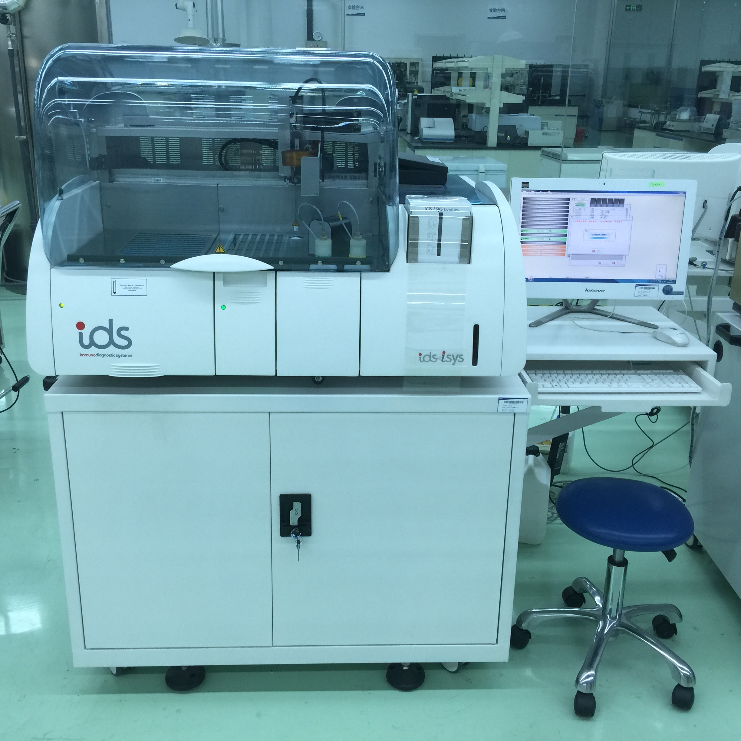 生化免疫分析实验区主要包括全自动生化分析仪和化学发光分析仪实验区,主要承担生化试剂和免疫发光试剂中间品和成品的质量控制监测。主要检测仪器包括日立7180全自动生化分析仪、AU5800、AU680、BECKMAN DXC600,九游 SPORTS CI1000化学发光分析仪、IDS-iSYS 全自动分析仪等。