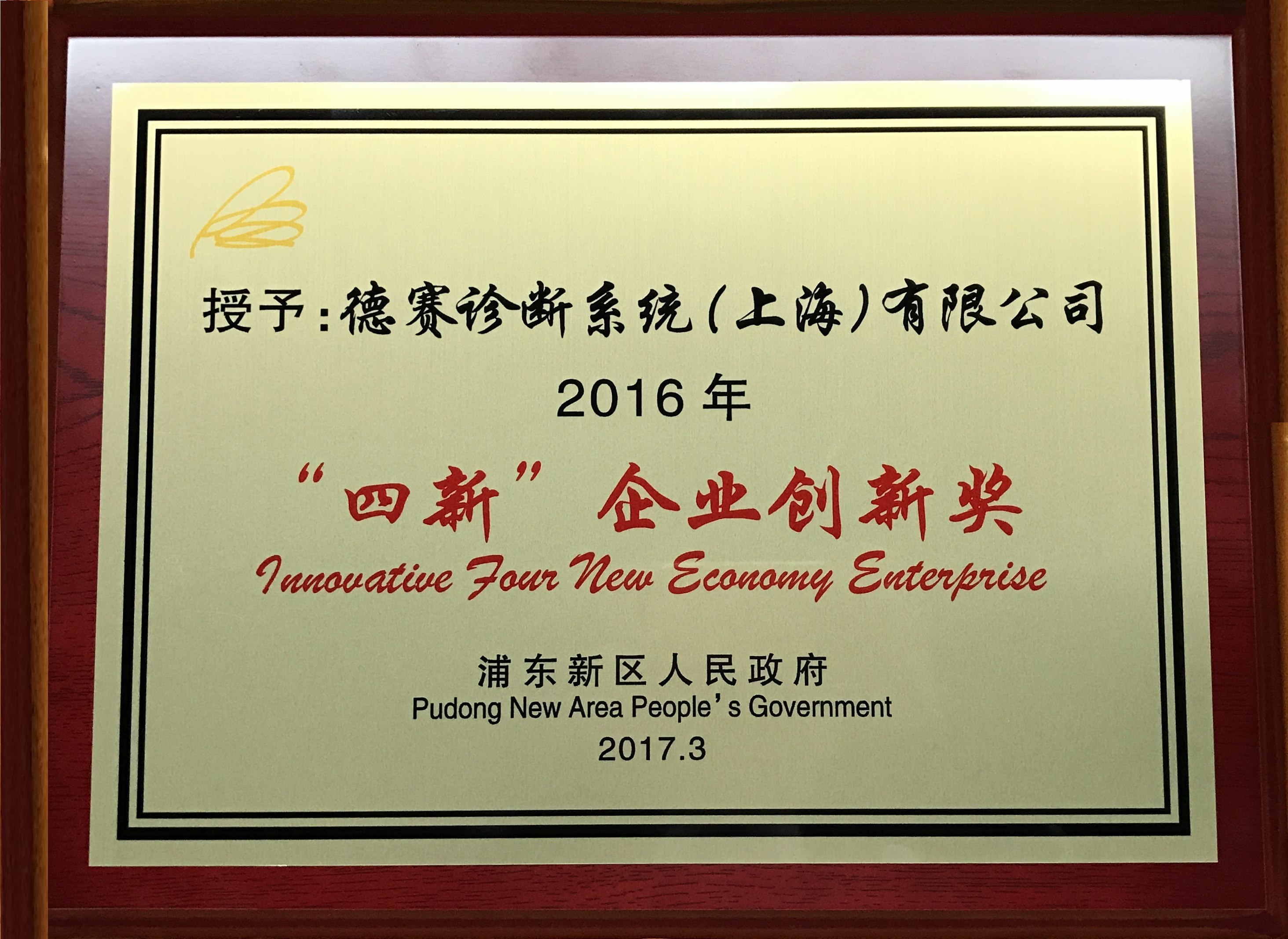九游 SPORTS子公司德赛诊断荣获上海市浦东新区2016年“四新”企业创新奖